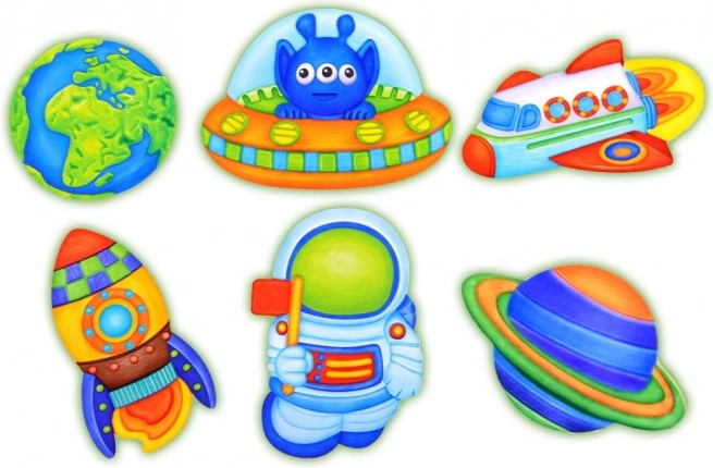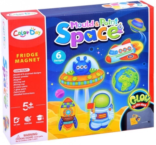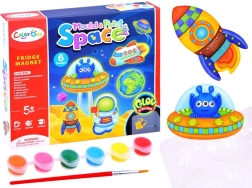 Dzięki dołączonym formom i farbom dzieci zrobią oryginalne magnesy z motywami rakiet, planet i astronautów. Tworzenie jest proste i zabawne.