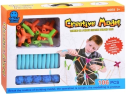 Dzięki 106 elementom dzieci mogą budować niezliczone konstrukcje, które pobudzają ich kreatywność i wyobraźnię przestrzenną.