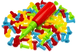 Kolorowe plastikowe śruby wspierają rozpoznawanie kolorów oraz kreatywne myślenie.