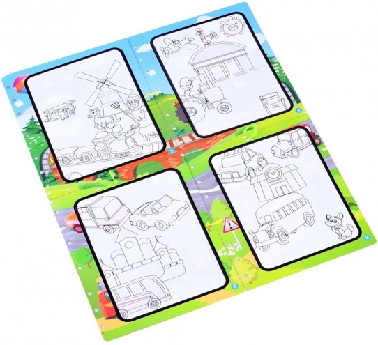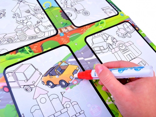 Magiczna książka wodna do malowania pozwala dzieciom tworzyć bez bałaganu. Pióro wodne umożliwia odkrywanie ukrytych kolorów i obrazków.