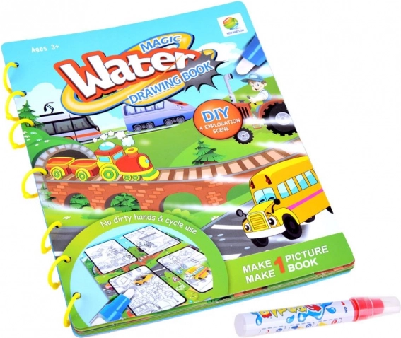 Magiczna książka wodna do malowania jest idealna dla każdego małego artysty. Książka pozwala na malowanie za pomocą pióra wodnego, które odkrywa ukryte obrazki i kolory na poszczególnych stronach. Po wyschnięciu obrazki znikają, a dzieci mogą zacząć od nowa.