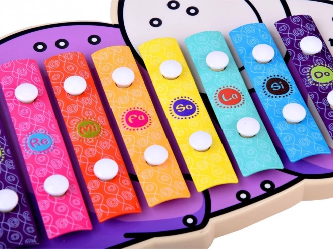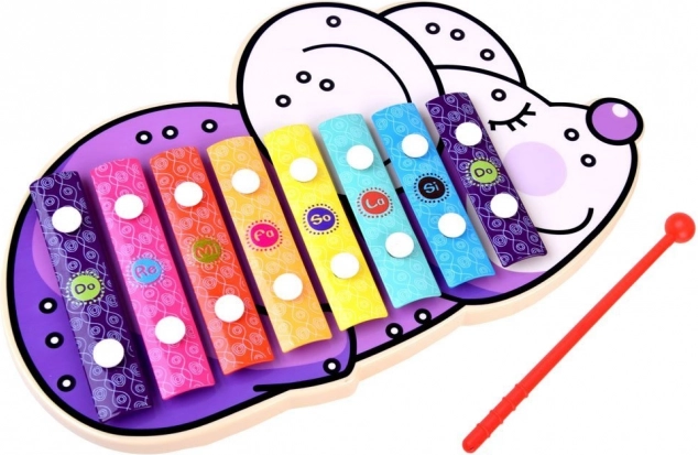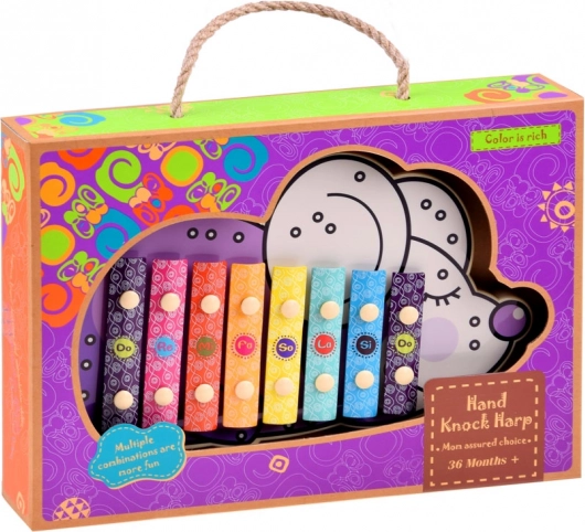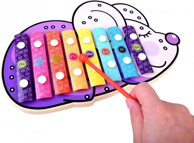 Pierwsze cymbałki dla Twojego dziecka w uroczym kształcie myszki, które zachwycą każdego małego muzyka. Panel cymbałków ma formę myszki i zawiera metalowe płytki, na których można zagrać gamę do, re, mi, fa, so, la, si, do. Wykonane z wysokiej jakości plastiku, a pod spodem znajduje się miejsce na plastikową pałeczkę.