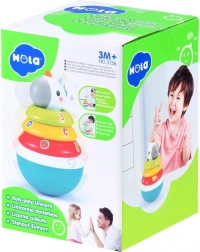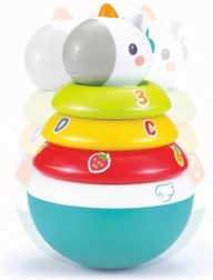 Profilowana podstawa pozwala zabawce działać jak kiwaczek. Podczas kołysania wydaje przyjemne grzechoczące dźwięki, ucząc dzieci związku przyczyny i skutku.