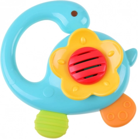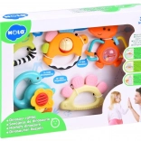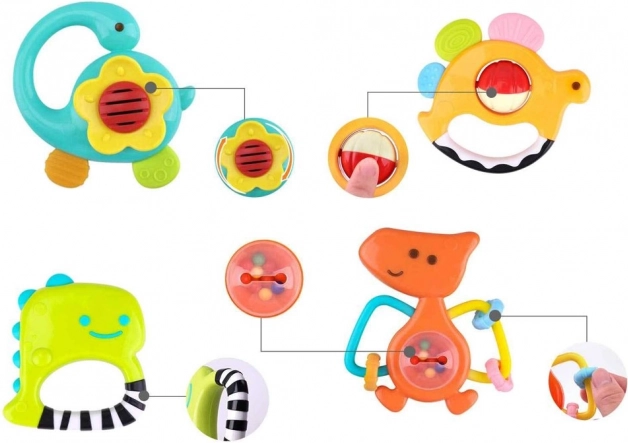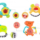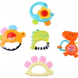 Kolorowe grzechotki i gryzaki są zaprojektowane tak, aby stymulować wzrok i słuch dziecka.