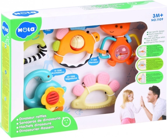 Odkryj zestaw grzechotek i gryzaków, który został zaprojektowany specjalnie dla najmłodszych dzieci, które zaczynają odkrywać świat. Ten zestaw zawiera pięć grzechotek w kształcie dinozaurów, każda z jasnego plastiku i bezpieczna dla dzieci.
