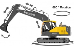 Dzięki w pełni funkcjonalnemu zdalnemu sterowaniu możesz płynnie sterować koparką do przodu i do tyłu oraz obracać kabinę do 660°.
