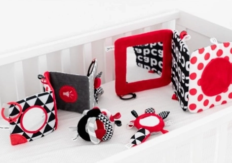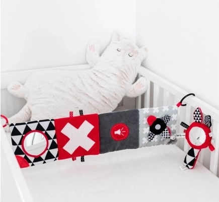 Kontrastowa grzechotka z gwizdkiem i lusterkiem z kolekcji SENSORY jest przeznaczona dla najmłodszych dzieci. Dzięki praktycznemu kształtowi zabawkę można łatwo chwytać. Grzechotka ma elementy piszczące, lusterko oraz materiałowe tasiemki. Kontrastowe barwy stymulują rozwój zmysłów dziecka. Więcej informacji o produkcie znajdziesz w tym filmie: https://www.youtube.com/watch?v=TiuOPH8SJAk&list=PLyuCTn7E_UX4T16PNxfqFjffk4yO1xNXC&index=6 Dlaczego zabawki sensoryczne są tak ważne? Wzrok dziecka jest po urodzeniu najsłabiej rozwiniętym zmysłem. Ciemność panująca w łonie matki nie pozwala na pełny rozwój wzroku w okresie prenatalnym. Po narodzinach wzrok dziecka jest rozmyty i mglisty. Dziecko widzi jedynie zarysy w odległości 20–30 cm, duże kształty i elementy otoczenia. Około po miesiącu zaczyna dostrzegać kolory, najpierw czerwony i czarny. Mniej więcej po trzech miesiącach zauważa kolejne wyraziste barwy. Około w wieku sześciu miesięcy zaczyna widzieć detale na obrazkach i widzi znacznie wyraźniej. W dwunastym miesiącu życia wzrok dziecka jest już w pełni rozwinięty jak u dorosłego i staje się świetnym narzędziem do odkrywania świata. Zabawki sensoryczne z nowej kolekcji SENSORY pomagają stymulować wzrok dziecka i ćwiczą umiejętność koncentracji już od pierwszych tygodni życia. O kolekcji SENSORY: Kolekcja zabawek sensorycznych została opracowana dla dzieci do pierwszego roku życia. W tym okresie zachodzą najważniejsze zmiany w rozwoju psychomotorycznym dziecka. Zabawki sensoryczne odpowiadają na aktualny trend rynkowy, który koncentruje się na wspieraniu rozwoju poprzez zabawę, gdy rodzic wraz z dzieckiem może stymulować rozwój wzroku, ćwiczyć umiejętność skupiania uwagi na obiekcie, celowania i śledzenia obiektów wzrokiem, a także doskonalić zręczność i koordynację. Instrukcja użytkowania: Utrzymuj w czystości. Instrukcja pielęgnacji znajduje się na wszywce. Ostrzeżenie! Ważne dla zdrowia i bezpieczeństwa Twojego dziecka! Przed każdym użyciem dokładnie sprawdź produkt. Przy pierwszych oznakach uszkodzenia lub zużycia produkt natychmiast wyrzuć i nie używaj dalej. Opakowanie otwieraj energicznym rozerwaniem folii bez użycia nożyczek. Ostrzeżenie! Plastikowe opakowanie (folia) przechowuj poza zasięgiem dziecka, aby zapobiec ryzyku uduszenia. Pluszowa grzechotka spełnia wymagania: Dyrektywa Parlamentu Europejskiego i Rady 2009/48/WE w sprawie bezpieczeństwa zabawek EN 71-1 Bezpieczeństwo zabawek – Część 1: Właściwości mechaniczne i fizyczne EN 71-2 Bezpieczeństwo zabawek – Część 2: Palność EN 71-3 Bezpieczeństwo zabawek – Część 3: Migracja określonych pierwiastków