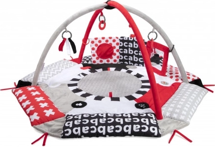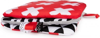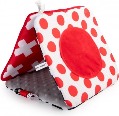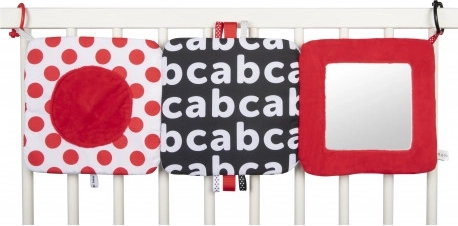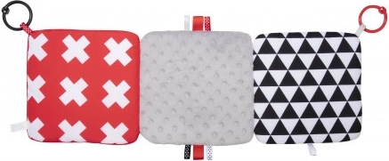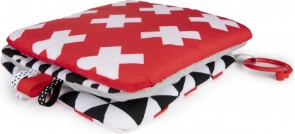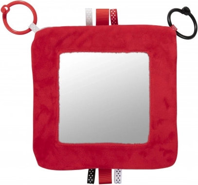 Kontrastowe zawieszane lusterko z kolekcji SENSORY jest przeznaczone już dla najmłodszych dzieci. Zabawka może być łatwo przymocowana w wybranym miejscu – do wózka, łóżeczka lub fotelika samochodowego, a także złożona w kształt piramidy lub rozłożona jak książeczka. Praktyczny dodatek posiada szeleszczące i piszczące elementy oraz lusterko. Sensoryczne kolory i różne faktury materiałów stymulują rozwój zmysłów dziecka. Więcej informacji o produkcie znajdziesz w tym filmie: https://www.youtube.com/watch?v=ODSDyoyN7l0 Dlaczego zabawki sensoryczne są tak ważne? Wzrok dziecka jest po urodzeniu najsłabiej rozwiniętym zmysłem. Ciemność, która dominuje w łonie matki, nie pozwala na pełny rozwój wzroku w okresie prenatalnym. Po urodzeniu wzrok dziecka jest rozmyty i mglisty. Dziecko widzi jedynie zarysy w odległości 20–30 cm, duże kształty i elementy otoczenia. Około po miesiącu zaczyna dostrzegać kolory, początkowo czerwony i czarny. Mniej więcej po trzech miesiącach zauważa kolejne wyraziste barwy. Około w wieku sześciu miesięcy zaczyna widzieć detale na obrazkach i widzi znacznie wyraźniej. W dwunastym miesiącu życia wzrok dziecka jest już w pełni rozwinięty jak u osoby dorosłej i staje się świetnym narzędziem do odkrywania świata. Zabawki sensoryczne z nowej kolekcji SENSORY pomagają stymulować wzrok dziecka i ćwiczą umiejętność koncentracji już od pierwszych tygodni życia. O kolekcji SENSORY: Sensoryczna kolekcja zabawek została opracowana dla dzieci do pierwszego roku życia. W tym okresie zachodzą najważniejsze zmiany w rozwoju psychomotorycznym dziecka. Zabawki sensoryczne odpowiadają na aktualny trend na rynku, który koncentruje się na wspieraniu rozwoju poprzez zabawę, kiedy rodzic razem z dzieckiem może stymulować rozwój wzroku, ćwiczyć zdolność skupiania uwagi na obiekcie, celowania i śledzenia obiektów wzrokiem, a także ćwiczyć zręczność i koordynację. Instrukcja użytkowania: Utrzymuj zabawkę w czystości. Wskazówki dotyczące prania znajdują się na metce produktu. Pranie ręczne w 30°C przy użyciu środka mydlanego. Przed każdym użyciem dokładnie sprawdź produkt. Wyrób wyrzuć przy pierwszych oznakach uszkodzenia lub zużycia. Przed podaniem zabawki dzieciom usuń wszystkie elementy opakowania, aby zapobiec zadławieniu, i przechowuj je poza zasięgiem dzieci. Instrukcję zachowaj na później. Kod partii znajduje się na opakowaniu. Zabawka spełnia certyfikaty: ISO 9001, ISO 22716. Produkt został zaprojektowany i zatwierdzony w UE.