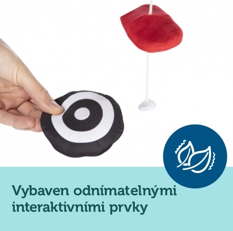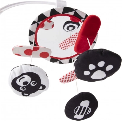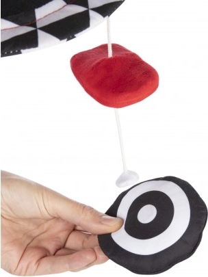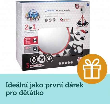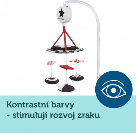 Kontrastowa pluszowa karuzela z melodiami z kolekcji SENSORY jest przeznaczona do zamocowania nad łóżeczkiem dla najmłodszych dzieci. Karuzela jest wyposażona w pozytywkę, duże lusterko oraz pluszowe, odpinane elementy z wszytym magnesem. Na karuzeli można odtwarzać do 12 melodii, które doskonale pomagają przy zasypianiu. Kontrastowe kolory i melodie stymulują rozwój zmysłów dziecka oraz jego koordynację wzrokowo-słuchową. Więcej informacji o produkcie znajdziesz w tym filmie: https://www.youtube.com/watch?v=xFGM2JqeIwE Dlaczego zabawki sensoryczne są tak ważne? Wzrok dziecka jest po urodzeniu najsłabiej rozwiniętym zmysłem. Ciemność panująca w macicy nie pozwala na pełny rozwój wzroku w okresie prenatalnym. Po narodzinach wzrok dziecka jest rozmazany i mglisty. Dziecko widzi jedynie zarysy w odległości 20–30 cm, duże kształty i elementy otoczenia. Około po miesiącu zaczyna widzieć kolory, początkowo czerwony i czarny. Po około trzech miesiącach zaczyna dostrzegać kolejne wyraziste barwy. Mniej więcej w wieku sześciu miesięcy zaczyna widzieć detale na obrazkach, a widzenie staje się znacznie wyraźniejsze. W dwunastym miesiącu życia wzrok dziecka jest już w pełni rozwinięty jak u osoby dorosłej i staje się wspaniałym narzędziem do odkrywania świata. Zabawki sensoryczne z nowej kolekcji SENSORY pomagają stymulować wzrok dziecka i ćwiczyć umiejętność koncentracji uwagi już od pierwszych tygodni życia. O kolekcji SENSORY: Zmysłowa kolekcja zabawek została opracowana dla dzieci do pierwszego roku życia. W tym okresie zachodzą najważniejsze zmiany w psychomotorycznym rozwoju dziecka. Zabawki sensoryczne odpowiadają aktualnemu trendowi na rynku, który koncentruje się na wspieraniu rozwoju poprzez zabawę, gdy rodzic wraz z dzieckiem może stymulować rozwój wzroku, ćwiczyć umiejętność skupienia uwagi na obiekcie, namierzania i śledzenia obiektów wzrokiem, a także doskonalić zręczność i koordynację. Ostrzeżenie: Umieść karuzelę tak, aby dziecko nie miało z nią bezpośredniego kontaktu. Zmontuj zabawkę zgodnie ze schematem (poszczególne elementy mogą różnić się od tych na rysunku). Zabawki poruszają się, melodie uspokajają dziecko i ułatwiają zasypianie. Instrukcja użycia: Utrzymuj w czystości, pozytywkę przecieraj wilgotną ściereczką lub gąbką. Instrukcja pielęgnacji pluszowych elementów znajduje się na wszywce. Uwaga! Ważne dla zdrowia i bezpieczeństwa Twojego dziecka! Nie używaj zabawki dla dzieci, które zaczynają samodzielnie podnosić się na rękach i kolanach. Zapobiegnie to możliwemu zaplątaniu się dziecka w zabawkę. Uwaga! Montaż i kontrolę złożenia zabawki przed użyciem zawsze powierz wyłącznie osobie dorosłej. Uwaga! Ważne! Przymocuj zabawkę nad główką dziecka w jego polu widzenia. Przed każdym użyciem sprawdź produkt. Przy pierwszych oznakach zużycia lub uszkodzenia nie używaj dalej produktu – wymień go na nowy. Karuzela spełnia wymagania: Dyrektywy Parlamentu Europejskiego i Rady 2009/48/WE w sprawie bezpieczeństwa zabawek EN 71-1 Bezpieczeństwo zabawek – Część 1: Właściwości mechaniczne i fizyczne EN 71-2 Bezpieczeństwo zabawek – Część 2: Palność EN 71-3 Bezpieczeństwo zabawek – Część 3: Migracja określonych pierwiastków