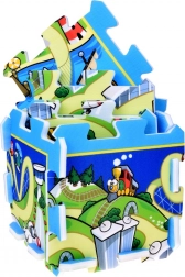 Dzięki brzegom na zatrzask elementy łatwo złożyć w dużą matę, kostkę lub proste domki – zabawa w świecie płaskim i przestrzennym.