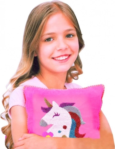 Dwustronne cekiny umożliwiają zmianę koloru i dodają poduszce element zabawy.