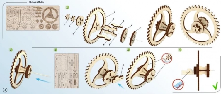 Precyzyjnie wycięte drewniane elementy, czytelna instrukcja obrazkowa oraz zalecane woskowanie osi zapewniają płynne obracanie i bezproblemowe działanie.