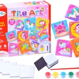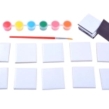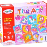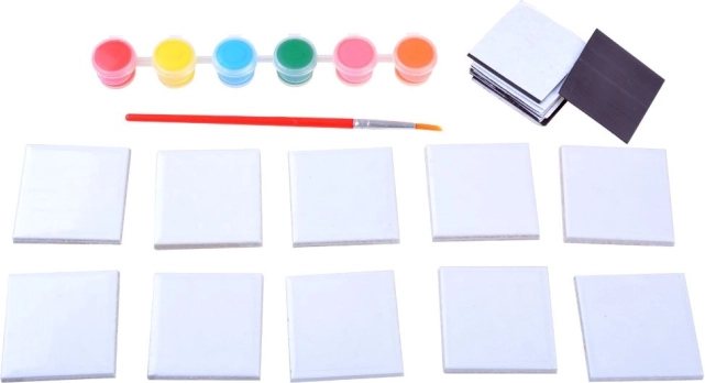 Zestaw zawiera wszystkie niezbędne elementy do wykonania dziesięciu magnesów – od płytek po farby i pędzelek. Dzieci mogą więc natychmiast zanurzyć się w twórczej zabawie.