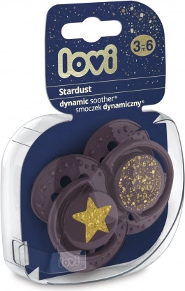 Stardust jest tutaj! Wyjątkowa, designerska, przyciągająca wzrok, premium kolekcja od LOVI. Unikalny design kolekcji Stardust – zdobienie w postaci złotego brokatu, przypominającego rozgwieżdżone niebo. Kolekcja wyróżnia się dynamicznym smoczkiem LOVI w rozmiarze 3–6 m, który powstał we współpracy z neurologopedami w celu zapewnienia naturalnego i zdrowego rozwoju podniebienia, zębów i dziąseł dziecka. Gumka smoczka dynamicznie dostosowuje się do rytmu ssania dziecka, nie zaburzając odruchu ssania. Nie zawiera BPA. W opakowaniu 2 szt. WSZYSCY JESTEŚMY Z GWIAZD Dynamiczny smoczek LOVI został stworzony we współpracy z neurologopedami, aby zapewnić naturalny i zdrowy rozwój podniebienia, zębów i dziąseł dziecka. Silikonowy, symetryczny, dynamiczny smoczek LOVI został przebadany klinicznie. Wszystkie smoczki LOVI wykonane są z silikonu, który jest bezsmakowy i bezzapachowy. Silikonowe smoczki są trwalsze i łatwiejsze do utrzymania w czystości. Unikalna, symetryczna, dynamiczna gumka bardzo dobrze się odpowietrza i nie deformuje podniebienia dziecka. zapobiega odruchowi gryzienia smoczka umożliwia naturalne połykanie śliny wspiera zdrowy rozwój mowy i kształtowanie zgryzu nie deformuje podniebienia dziecka bardzo dobrze się odpowietrza Dynamiczna gumka jest wykonana z niejednorodnych warstw silikonu, dzięki czemu wydłuża się i kurczy w zależności od rytmu ssania dziecka. Symetryczny kształt przypomina brodawkę mamy. Kształt gumki umożliwia także włożenie smoczka do ust dziecka w dowolny sposób (nie ma określonej strony górnej i dolnej). Profilowany, wycięty kształt tarczki umożliwia dziecku swobodne oddychanie nosem. Jest wykonana z bezpiecznego materiału, niezawierającego BPA. Unikalna krawędź tarczki wykonana z materiału medycznego jest przyjemna w dotyku i zapobiega odciskom od smoczka. Otwory w tarczce umożliwiają cyrkulację powietrza, ograniczają gromadzenie się śliny za tarczką, a tym samym zapobiegają podrażnieniom delikatnej skóry dziecka. Kółko w smoczku trzyma się pewnie, ułatwia chwytanie i podawanie smoczka. Można do niego przypiąć łańcuszek lub tasiemkę. Ze względów higienicznych smoczek jest wyposażony w plastikową osłonkę. Plastikowe pudełko służy jako etui do higienicznego przechowywania smoczków. Smoczki LOVI zdobyły wyróżnienia przyznane przez konsumentów: Smoczki są dostępne w wielu nowoczesnych wersjach kolorystycznych. Zestaw zawiera: 2 szt. dynamicznych smoczków LOVI 2 szt. plastikowych osłonek na smoczek 1 szt. plastikowego pudełka Instrukcja użytkowania: Przed pierwszym użyciem ze względów higienicznych wysterylizuj smoczek we wrzącej wodzie przez około 5 minut. Po ostudzeniu wyciśnij pozostałą wodę ze smoczka. Przed każdym użyciem umyj smoczek w ciepłej wodzie. Nie używaj żadnych chemicznych środków dezynfekujących! Wysokie stężenie tych preparatów może uszkodzić plastikowe elementy smoczka. Nigdy nie maczaj smoczka w słodkich substancjach ani lekach – narażasz dziecko na ryzyko powstania ubytków szkliwa. Smoczek używaj maksymalnie 1–2 miesiące, a następnie ze względów higienicznych i bezpieczeństwa wymień na nowy. Jeśli smoczek wsunie się dziecku do ust, NIE PANIKUJ – smoczek jest skonstruowany tak, że dziecko nie może go połknąć i w takiej sytuacji możesz bezpiecznie go wyjąć. Wyjmuj smoczek możliwie najostrożniej. Przechowuj smoczek w czystym, suchym i zamkniętym etui. Nie zalecamy używania smoczka dla dziecka powyżej 3. roku życia. Ostrzeżenie! Ważne dla zdrowia i bezpieczeństwa Twojego dziecka! Przed każdym podaniem dziecku sprawdź stan smoczka. Zwróć szczególną uwagę na smoczek, gdy dziecku wyrosną pierwsze ząbki. Sprawdź jakość gumki, dokładnie naciągając ją we wszystkich kierunkach. Przy pierwszych oznakach uszkodzenia natychmiast wyrzuć smoczek i nie używaj go dalej. Używaj wyłącznie takich uchwytów do smoczków, które spełniają wymagania normy EN 12586. Nigdy nie przypinaj smoczka do różnych sznurków, sznurowadeł czy wstążek odzieży. Dziecko może się udusić. Nie pozostawiaj smoczka w bezpośrednim świetle słonecznym, w pobliżu źródła ciepła ani w środkach dezynfekujących dłużej, niż zalecane – możesz spowodować osłabienie gumki smoczka. Zdjętą osłonkę przechowuj poza zasięgiem dziecka – zapobiegniesz możliwemu zadławieniu. Silikonowy smoczek spełnia wymagania: Dyrektywa Parlamentu Europejskiego i Rady 2001/95/WE o ogólnym bezpieczeństwie produktów EN 1400-1 Artykuły do pielęgnacji dzieci – Smoczki dla niemowląt i małych dzieci – Część 1: Ogólne wymagania bezpieczeństwa i informacje o produkcie EN 1400-2 Artykuły do pielęgnacji dzieci – Smoczki dla niemowląt i małych dzieci – Część 2: Wymagania mechaniczne i badania EN 1400-3 Artykuły do pielęgnacji dzieci – Smoczki dla niemowląt i małych dzieci – Część 3: Wymagania chemiczne i badania Smoczki LOVI nie zawierają bisfenolu A.
