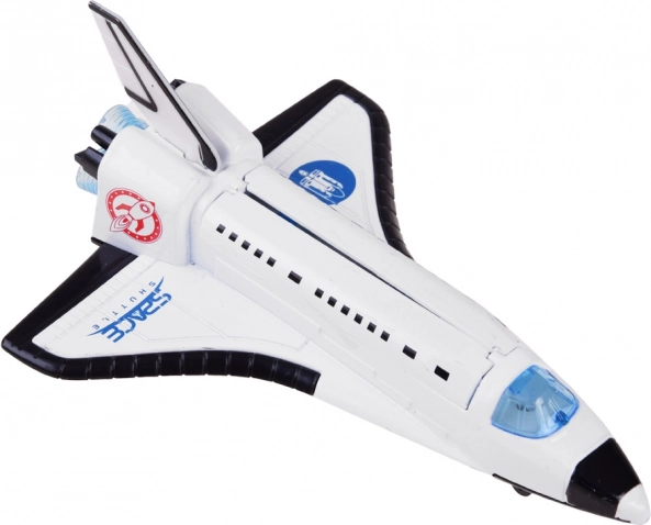Ten statek kosmiczny to marzenie każdego małego miłośnika kosmosu. Z połączeniem metalu i plastiku zapewnia realistyczne efekty świetlne i dźwiękowe, które aktywuje się przyciskiem umieszczonym pod otwieraną częścią maszyny. Po naciśnięciu usłyszysz dźwięk pracy silnika rakietowego i zapali się czerwone światło w kabinie pilota.
