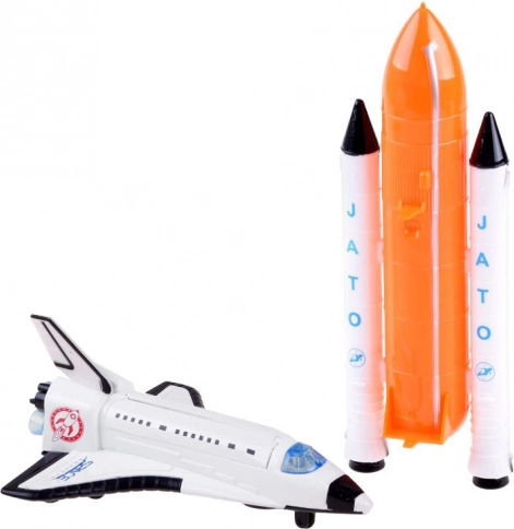 Integralną częścią zestawu jest moduł wahadłowy o wymiarach 15 cm x 10,5 cm x 6 cm oraz główna zbiornik z pomocniczymi rakietami o wielkości 22 cm x 7 cm x 4 cm.