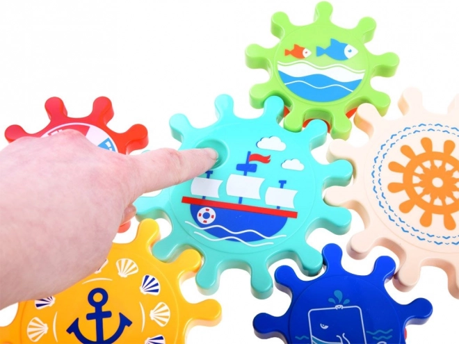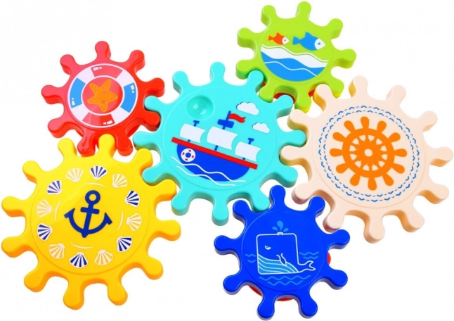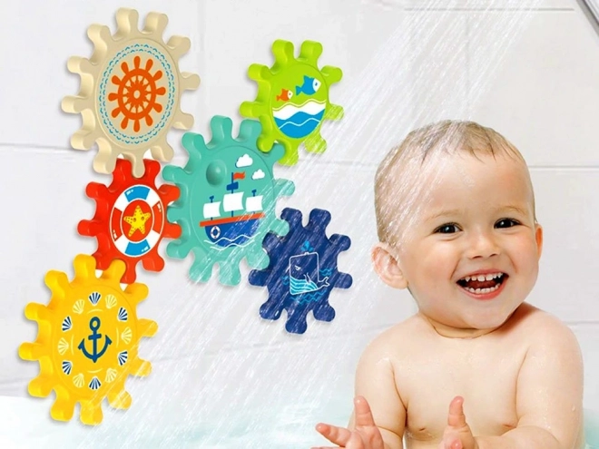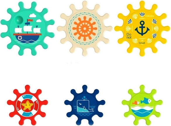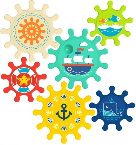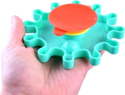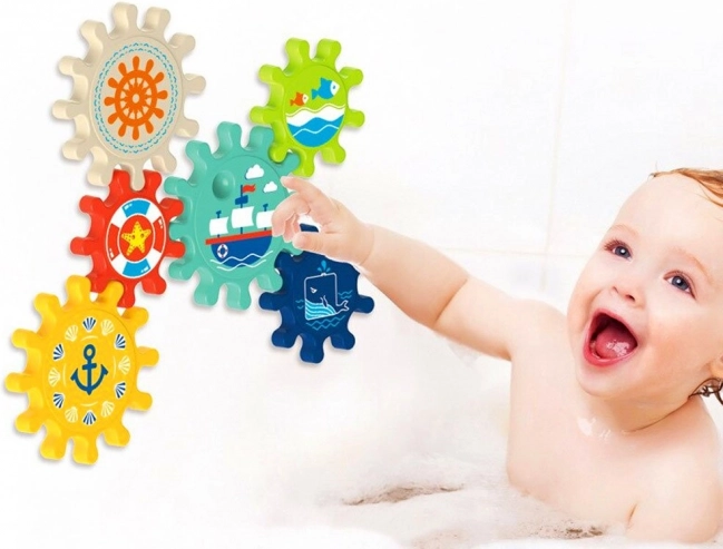 Wzbogacaj czas kąpieli o świetną zabawę z tym zestawem kolorowych kół zębatych, które można łatwo przymocować do ściany wanny lub prysznica. Dzieci uwielbiają kręcić koła zębate i obserwować, jak cały zestaw się porusza, co pomaga w rozwijaniu zdolności motorycznych oraz logicznego myślenia.