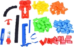 Kolorowe plastikowe elementy wykonane są z trwałego materiału, który zachęca do wielokrotnej zabawy i kreatywności.