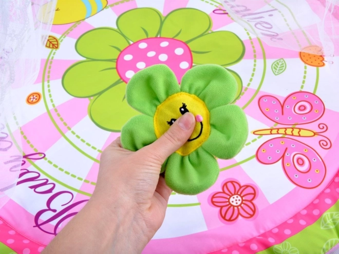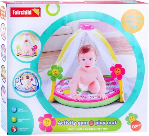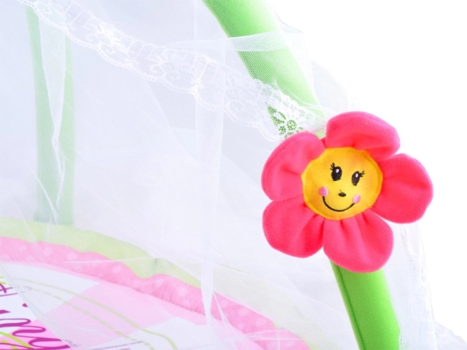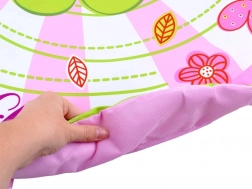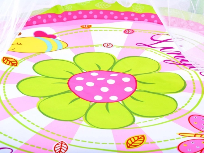 Dziecięca mata do zabawy została zaprojektowana tak, aby tworzyła bezpieczne i wygodne miejsce dla Twojego dziecka. Jej jasne kolory i miękki materiał są idealne do codziennej zabawy lub relaksu. Mata wyposażona jest w łuki z kwiatami i moskitierę, które chronią przed owadami oraz zwiększają atrakcyjność dla dzieci.
