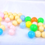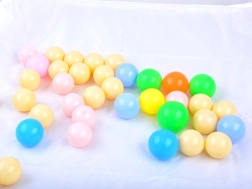 W zestawie znajduje się 35 jasnokolorowych plastikowych piłeczek wspierających zmysłowe postrzeganie.