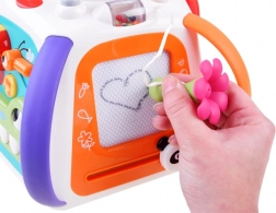 Wbudowany znikopis z kwiatowym rysikiem zachęca do pierwszych twórczych kroków. Przesuwane panele tworzą iluzję ruchu i ciekawą grę wizualną.