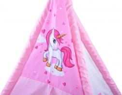 Stwórz dzieciom magiczną przystań do zabawy, czytania i odpoczynku. Różowy namiot tipi z jednorożcem łączy urokliwy design z praktycznym wykonaniem – tekstylny pokrowiec łatwo się czyści, a konstrukcję można szybko złożyć i rozłożyć. Namiot jest wystarczająco przestronny na ulubione zabawki i poduszki, a zarazem lekki do łatwego przenoszenia.