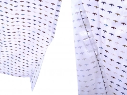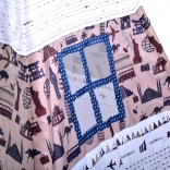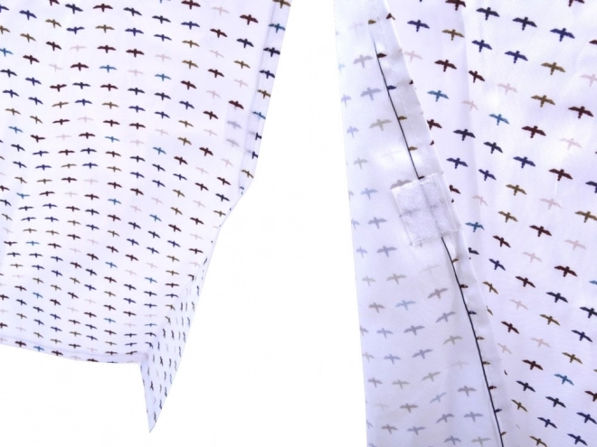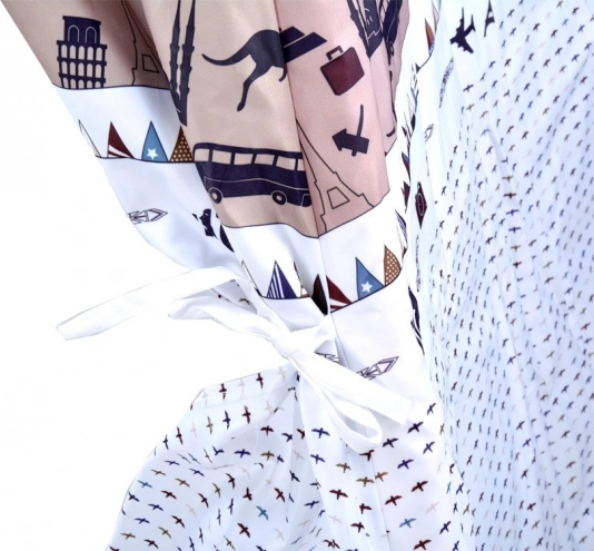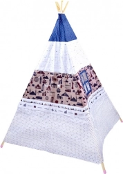 Namiot zaprojektowano z połączeniem białych, niebieskich i brązowych wzorów, które nadają mu zabawny i przyciągający wzrok wygląd.