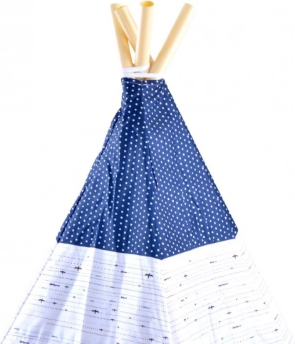 Dziecięcy namiot do zabawy z łatwością złożysz dzięki drewnianym kijom, które zapewniają stabilność i estetyczny wygląd.