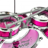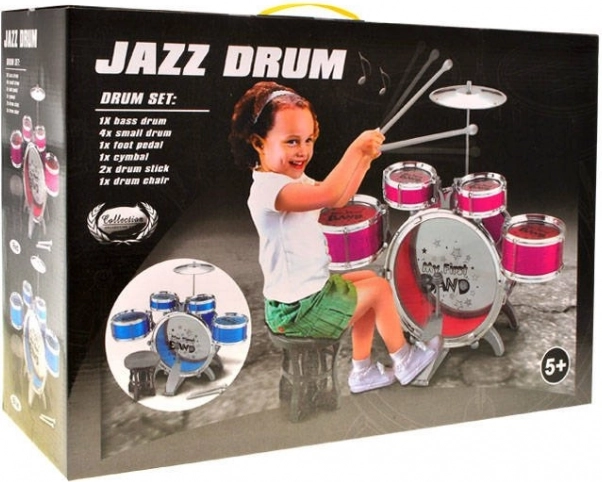 Ten atrakcyjny dziecięcy zestaw perkusyjny zawiera 5 bębnów, talerz, pedał do wielkiego bębna, krzesełko i pałeczki – wszystko, czego mały perkusista potrzebuje do swojego pierwszego „koncertu”. Dzięki lekkiej konstrukcji i bezpiecznym plastikowym materiałom zestaw jest odpowiedni dla początkujących i łatwy w przenoszeniu oraz przechowywaniu.