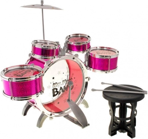 Startowy zestaw perkusyjny dla dzieci z pięcioma bębnami, talerzem i pedałem zapewni godziny muzycznej zabawy i rozwój poczucia rytmu. W komplecie wygodne krzesełko i pałeczki. Idealny prezent dla małych muzykantów, którzy chcą odkrywać świat muzyki i ćwiczyć koordynację. Realistyczny wygląd, łatwy montaż i trwałe plastikowe wykonanie.