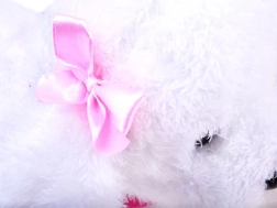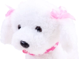 Dzięki miękkiemu i przyjemnemu w dotyku materiałowi piesek jest świetny do przytulania. Kolorowa obroża i kokardki dodają zabawce uroczego wyglądu, który dzieci szybko pokochają. Idealny do zabawy w domu na równych powierzchniach.