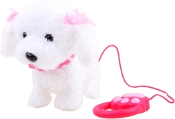 Podłącz smycz i za pomocą przycisku aktywuj chodzenie oraz szczekanie. Dzieci mogą prowadzić pieska po równych powierzchniach jak prawdziwego pupila.