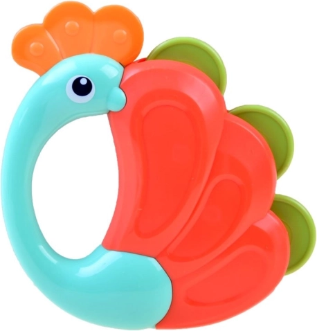 Grzechotka w kształcie sowy ma brązowe, żółte i czerwone kolory, które są bardzo atrakcyjne dla dzieci i jednocześnie stymulują wrażenia słuchowe.