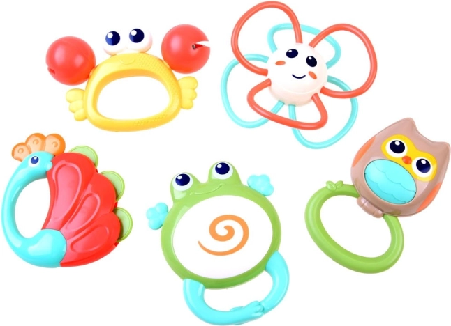 Kolekcja grzechotek oferuje pięć różnych zabawek w kształcie zwierzątek, które zostały zaprojektowane do bezpiecznej manipulacji małymi dziecięcymi rączkami. Te grzechotki nie tylko zabawią Twoje dziecko, ale także wspierają jego rozwój sensoryczny i motoryczny.