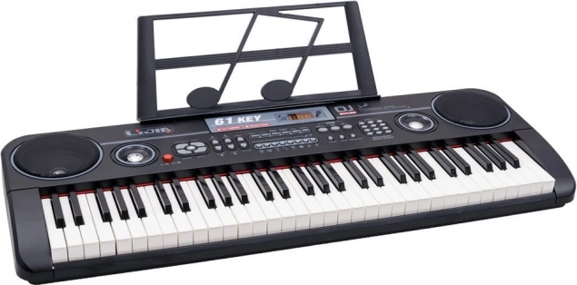 Wielofunkcyjny keyboard z 61 klawiszami, 100 brzmieniami, 100 rytmami i 8 padami perkusyjnymi. Oferuje wejście USB do podkładów MP3, nagrywanie/odtwarzanie, wyświetlacz LED, głośniki stereo oraz złącze mikrofonu. Idealny dla początkujących i do gry w domu.