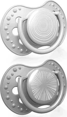 Dynamiczna gumkaWykonana z niejednorodnej warstwy silikonu, która umożliwia kurczenie się i rozszerzanie podczas ssania przez dziecko; symetryczny kształt gumki przypomina brodawkę mamy. Numer 1 wśród smoczkówPotwierdzone w badaniu konsumenckim przeprowadzonym w grupie 700 mam dzieci w wieku 0–24 miesiące, GfK, listopad 2018. Silikonowa gumkaWykonana z trwałego, delikatnego, wysokiej jakości silikonu, bez smaku i zapachu. Profilowana tarczkaJej kształt umożliwia dziecku swobodne oddychanie nosem; zastosowano bezpieczne materiały bez bisfenolu A. Otwory w tarczceUmożliwiają swobodny przepływ powietrza, zapobiegając podrażnieniom delikatnej skóry dziecka. Wygodne uchwyty Zestaw zawiera:2 szt. dynamiczny smoczek LOVI2 szt. plastikowe etui na smoczek1 szt. higieniczna kapsuła do przechowywania smoczkaInstrukcja użytkowania:Przed pierwszym użyciem ze względów higienicznych wysterylizuj smoczek we wrzącej wodzie przez około 5 minut. Po ostudzeniu wyciśnij pozostałą wodę ze smoczka. Przed każdym użyciem umyj smoczek w ciepłej wodzie. Nie używaj żadnych chemicznych środków dezynfekujących! Wysokie stężenia tych środków mogą uszkodzić plastikowe części smoczka. Nigdy nie zanurzaj smoczka w słodkich substancjach ani lekach – narażasz dziecko na ryzyko powstania ubytków szkliwa zębów. Smoczek używaj maksymalnie 1–2 miesiące, następnie z powodów higienicznych i bezpieczeństwa wymień na nowy. Jeśli smoczek dostanie się dziecku do ust, NIE PANIKUJ – smoczek jest skonstruowany tak, aby dziecko nie mogło go połknąć i w takiej sytuacji możesz go bezpiecznie wyjąć. Wyjmuj smoczek możliwie jak najostrożniej. Przechowuj smoczek w czystym, suchym i zamkniętym etui. Nie zalecamy używania smoczka dla dziecka powyżej 3 lat. Ostrzeżenie! Ważne dla zdrowia i bezpieczeństwa Twojego dziecka! Przed każdym podaniem dziecku sprawdź stan smoczka. Zwracaj szczególną uwagę na smoczek, gdy dziecku wyrosną pierwsze ząbki. Sprawdź jakość gumki, dokładnie rozciągając ją we wszystkich kierunkach. Przy pierwszych oznakach uszkodzenia natychmiast wyrzuć smoczek i nie używaj go dalej. Używaj wyłącznie takich uchwytów do smoczków, które spełniają wymagania normy EN 12586. Nigdy nie przypinaj smoczka do różnych sznureczków, sznurowadeł czy wstążek odzieży. Dziecko może się udusić. Nie pozostawiaj smoczka w bezpośrednim świetle słonecznym, w pobliżu źródła ciepła ani w środkach dezynfekujących dłużej, niż zalecane – możesz osłabić gumkę smoczka. Zdjętą osłonkę trzymaj poza zasięgiem dziecka – zapobiegniesz możliwemu zadławieniu.Silikonowy smoczek spełnia wymagania:Dyrektywy Parlamentu Europejskiego i Rady 2001/95/WE o ogólnym bezpieczeństwie produktów,EN 1400-1 Wyroby do pielęgnacji dzieci – Smoczki dla niemowląt i małych dzieci – Część 1: Ogólne wymagania bezpieczeństwa i informacje o wyrobie,EN 1400-2 Wyroby do pielęgnacji dzieci – Smoczki dla niemowląt i małych dzieci – Część 2: Wymagania mechaniczne i badania,EN 1400-3 Wyroby do pielęgnacji dzieci – Smoczki dla niemowląt i małych dzieci – Część 3: Wymagania chemiczne i badania.