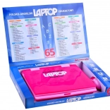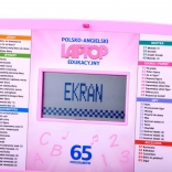 Interaktywny edukacyjny laptop dla dzieci oferuje 65 funkcji w języku polskim i angielskim, uczy liter, słów, liczb i prostego liczenia. Dzięki wyświetlaczowi LCD, dźwiękom i wciągającym grom rozwija logikę, pamięć oraz motorykę małą. Zasilanie przez kabel USB lub 3× AA baterie.