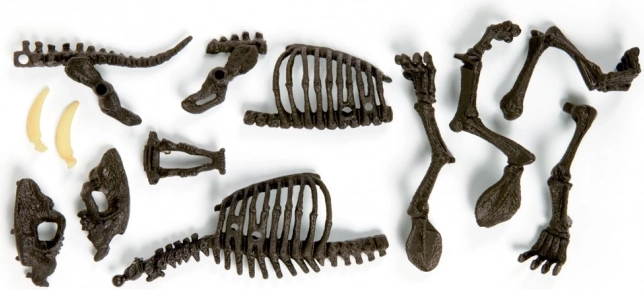 Zestaw zawiera wszystko, co potrzebne do zbudowania szkieletu i stworzenia gipsowego modelu głowy szablozębnego tygrysa. Odkryj jedno z najsilniejszych zwierząt, jakie kiedykolwiek żyło na Ziemi tysiące lat temu! Elementy kostne można łączyć, co pozwala na zbudowanie szkieletu, który można umieścić na podstawce jako eksponat na stole lub półce.