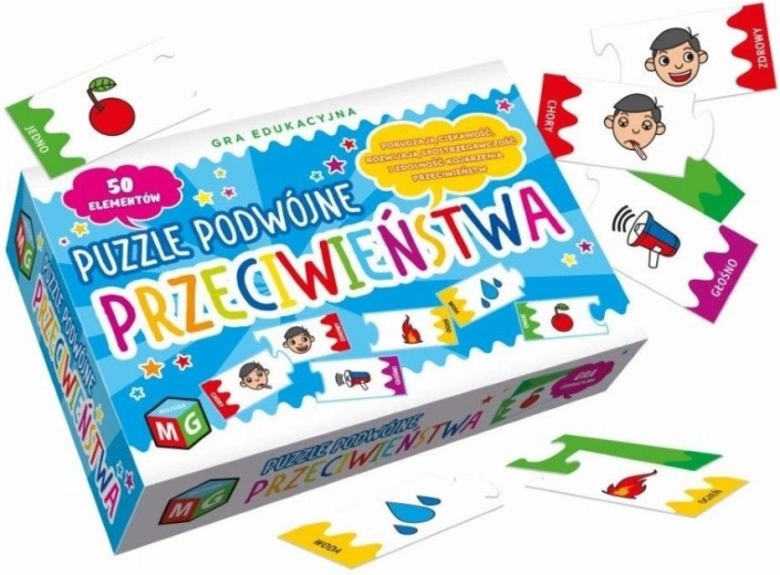 Puzzle Przeciwieństwa – to edukacyjna gra, w której dzieci szukają pasujących do siebie par puzzli. Nasza gra pozwala im ćwiczyć tworzenie i rozpoznawanie przeciwieństw. Układanie puzzli to świetnie spędzony czas z rodziną, przyjaciółmi i rodzeństwem.