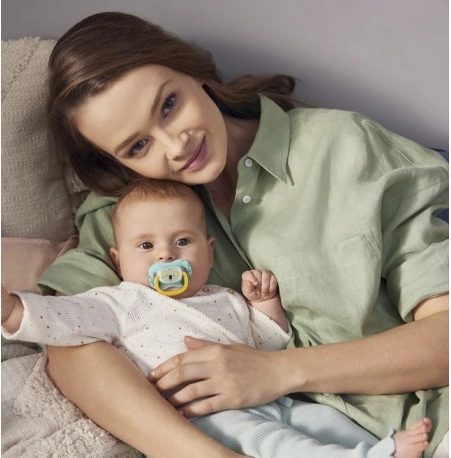 Praktyczny element świecący pomaga szybko znaleźć smoczek nawet w całkowitej ciemności, bez wybudzania maluszka.