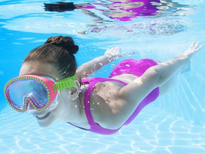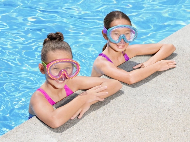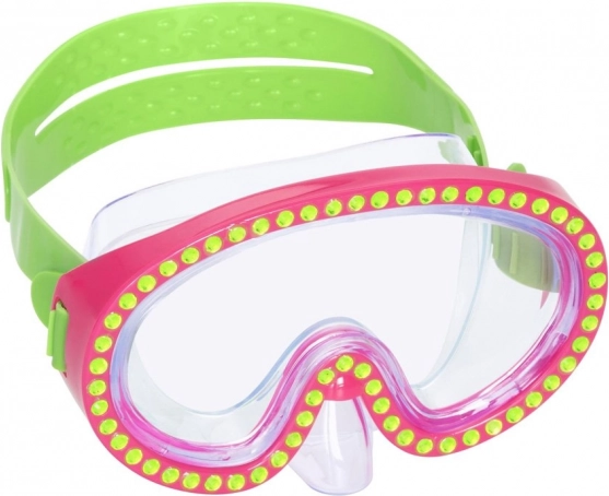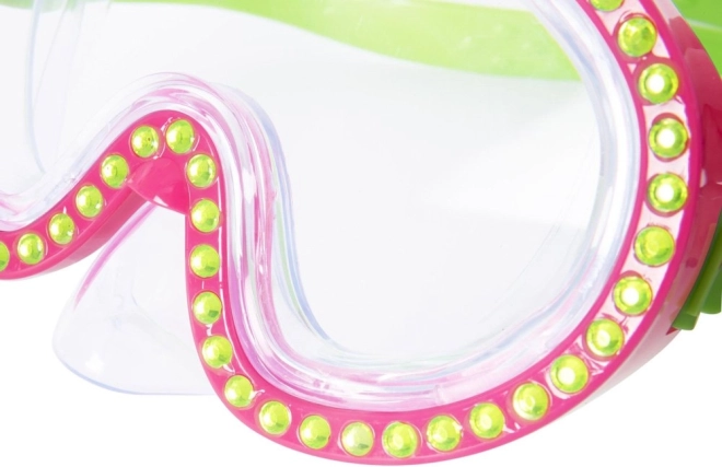 Maska do pływania jest ozdobiona kryształami, które nadają jej wyjątkowy i elegancki wygląd, gdy dzieci cieszą się pływaniem.