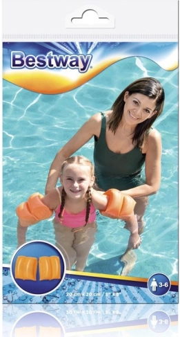 Praktyczne nadmuchiwane rękawki BESTWAY dla małych pływaków zapewniają bezpieczne podparcie w wodzie podczas zabawy i nauki pływania. Wykonane z trwałego winylu, mają dwie komory powietrzne oraz zawory bezpieczeństwa. Dzięki jaskrawopomarańczowemu kolorowi są doskonale widoczne i dobrze leżą, nie ograniczając ruchów.