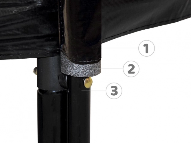 Wysokie bezpieczeństwo dzięki gęstej siatce z obwodowym wzmocnieniem, profilowanym słupkom z piankowym wypełnieniem oraz osłoniętym sprężynom.
