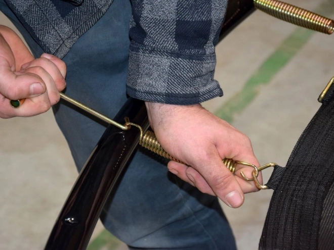 Mata JUMPING MAT z PP z 8 szwami oraz mocne, oksydowane sprężyny zapewniają świetne wybicie, sprężystość i długą żywotność.