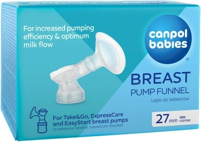 Wymienny lejek 27 mm do laktatorów Canpol babies. Rozmiar lejka – prawidłowo dobrany rozmiar ma duże znaczenie dla komfortu i skuteczności odciągania mleka matki. Zwiększa efektywność odciągania i pomaga uzyskać optymalny przepływ mleka. Elastyczny i ergonomiczny brzeg lejka – dopasowuje się do różnych kształtów piersi. Rozmiar lejka – właściwie dobrany rozmiar ma istotny wpływ na komfort i skuteczność odciągania pokarmu. Zestaw zawiera: korpus laktatora, silikonową wkładkę masującą, silikonowy zawór zwrotny 1 szt. Szczegółowe instrukcje montażu i czyszczenia znajdują się w instrukcji dołączonej do laktatora. Elastyczny i ergonomiczny brzeg lejka – dopasowuje się do różnych kształtów piersi. Rozmiar lejka – prawidłowo dobrany rozmiar ma znaczący wpływ na komfort i skuteczność odciągania mleka. Zwiększa efektywność odciągania i pomaga uzyskać optymalny przepływ mleka. Wykonano z bezpiecznego materiału, bez bisfenolu A. Sposób użycia: Zdemontuj laktator. Przed pierwszym i po każdym użyciu umyj wszystkie części mające bezpośredni kontakt z mlekiem: osłonę membrany, membranę, korpus laktatora z lejkiem, silikonową wkładkę masującą, osłonę lejka, silikonowy zawór zwrotny, adapter do butelki i butelkę w ciepłej wodzie z delikatnym środkiem czyszczącym, a następnie zanurz na 5 minut we wrzątku w celu zapewnienia higieny. Przed użyciem dokładnie wysusz wszystkie elementy. Uwaga! Nie pozostawiaj części na dnie garnka. Podczas sterylizacji mieszaj wodę, aby nie uszkodzić elementów. Silikonowe komponenty mające kontakt z mlekiem, czyli membranę, silikonową wkładkę masującą i silikonowy zawór zwrotny, można sterylizować w sterylizatorze elektrycznym. Ostrzeżenie! Laktatora, silikonowych rurek z łącznikami, zasilacza oraz kabla USB nie wolno myć ani sterylizować w wodzie. Do czyszczenia wytrzyj ściereczką. Zestaw części zamiennych spełnia wymagania: Dyrektywa Parlamentu Europejskiego i Rady 2001/95/WE o ogólnym bezpieczeństwie produktów.