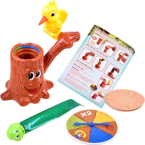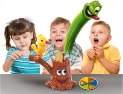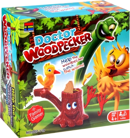 Gra Doktor Dzięcioł – chory pień to idealny wybór na wspólne wieczory i dziecięce przyjęcia. Gracze na zmianę kręcą obrotową ruletką, ustawiają pierścień z papierem na wylosowany kolor i „stukają” w papier dzięciołem. Celem jest zdobyć jak najwięcej trafień i jako pierwszy przebić papier tak, by z pnia wyskoczyła sprężynowa larwa.