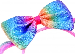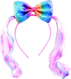 Wyrazista tęczowa kokarda natychmiast przyciąga wzrok i nadaje fryzurze wyjątkowy, odświętny wygląd.