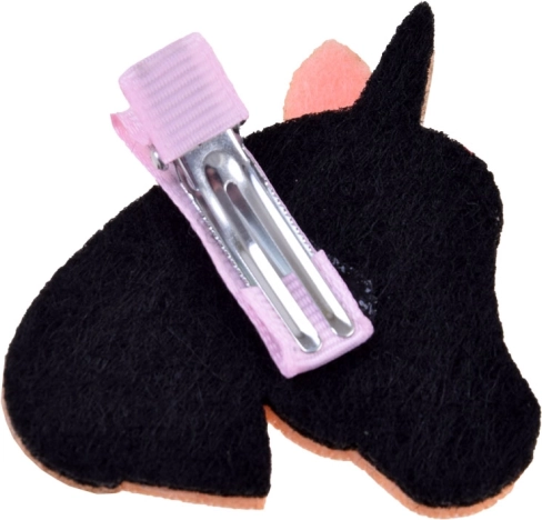 Błyszcząca spinka w kształcie głowy jednorożca trzyma włosy na miejscu i dodaje fryzurze figlarnego, baśniowego charakteru.