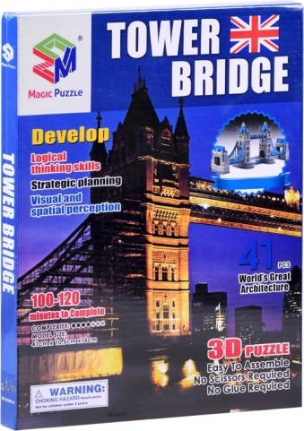 Zbuduj słynny londyński most TOWER BRIDGE jako realistyczny model 3D z 41 elementów. Składanie jest bez kleju i narzędzi, dzięki czemu jest bezpieczne i świetna zabawa zarówno dla dzieci, jak i dorosłych. Gotowy model stanie się stylową dekoracją, a jednocześnie rozwija wyobraźnię przestrzenną, logiczne myślenie i cierpliwość.