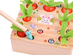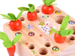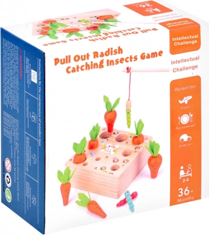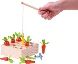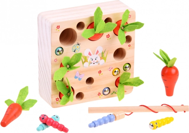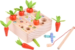 Drewniana gra z marchewkami i robakami zostały zaprojektowane dla najmłodszych, przyciągając swoją kolorową estetyką i wesołymi motywami. Dzieci mogą z łatwością zbierać marchewki i robaki za pomocą prętów z magnesem, co wzmacnia ich koordynację ręka-oko i motorykę małą.